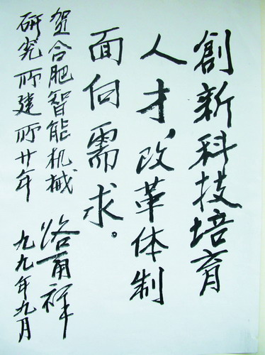 全国人大常委会副委员长、中科院院长路甬祥为智能所题词