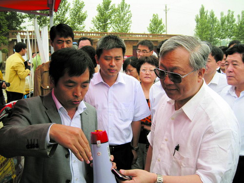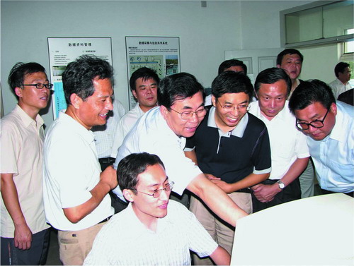 中科院院长路甬祥听取常务副所长王儒敬(左)有关智能农业信息技术应用的介绍