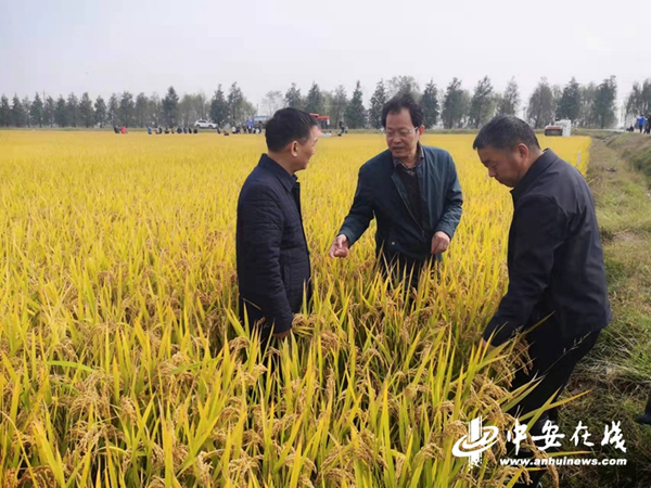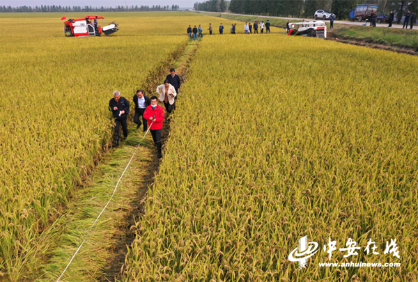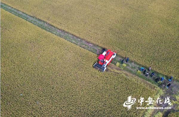 中安在线、中安新闻客户端讯 脆秆水稻是什么样的?和普通水稻相比有什么区别?10月21日,在安徽合肥庐江县白湖农场的脆秆水稻示范种植基地,稻浪涛涛,美不胜收。金秋时节,这片“科技稻田”迎来了丰收季。
