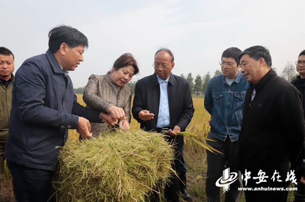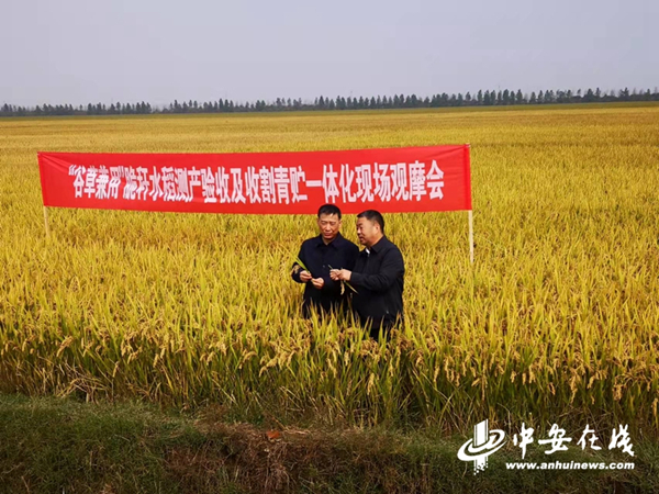 10月21日,合肥市科技局组织专家对白湖农场的“谷草兼用”脆秆水稻品种进行了实地测产。田间机械实收稻谷和秸秆测产结果显示,“科脆粳1号”水稻与对照品种相比,在稻谷上增产10.4%,在秸秆产量上增产8.1%。对机械打捆的秸秆粉碎情况测量结果显示,“科脆粳1号”较对照品种秸秆更易粉碎,小于10厘米秸秆占76.3%,对照品种占15.9%,更有利于秸秆青贮发酵。