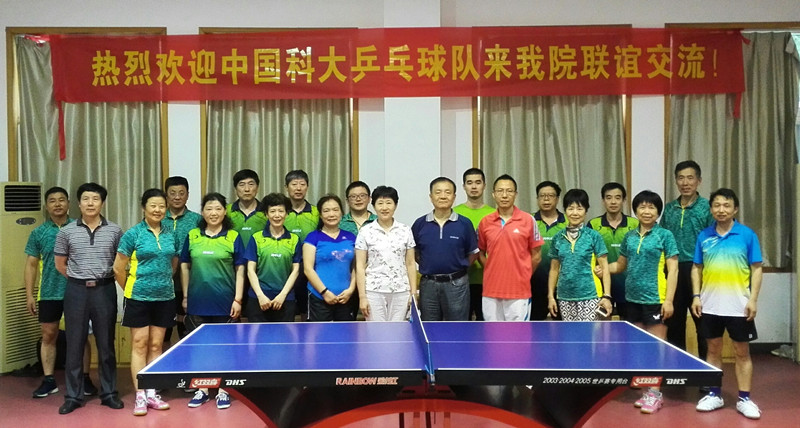 中国科学院“全民健身日”来临之际,6月7日下午,在中国科学技术大学工会常务副主席史明瑛带领下,校教工乒乓球代表队一行8人应邀来到科学岛,与合肥研究院乒乓球代表队进行了一场别开生面、形式多样的乒乓球友谊赛。