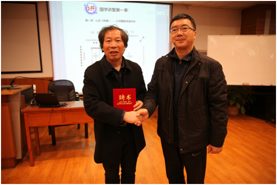 王世朝教授从气象学大师竺可桢讲起,列举了中国著名的科学家们深厚的国学功底,对于他们从事自然科学研究大有裨益,鼓励大家重视国学修养。接着从《河图》、《洛图》开讲《周易》。他认为,《周易》作为我国群经之首,是重要的哲学盛典,是中国传统思想文化中自然哲学与人文实践的理论根源,是古代人民思想、智慧的结晶,被誉为“大道之源”。内容极其丰富,对中国几千年来的政治、经济、文化等各个领域都产生了极其深刻的影响。王世朝强调我们学习《周易》,本着吸取其精华,剔除其糟粕的原则,主要学习《周易》中所包含的中华优秀传统文化的人生智慧和所蕴含的人文精神。王世朝从事汉语言文学领域的专项研究,致力于中国优秀传统文化的研究和传播,他以其丰富的学识,旁征博引,深入浅出的讲解,赢得了大家阵阵掌声。