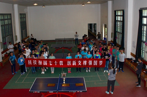 为了庆祝新中国70周年国庆和建院70周年,同时响应中科院“全民健身计划”的号召,丰富安光所职工学生的业余文体生活,增进友谊、促进交流,推动安光所乒乓球运动的发展,5月11日,所工会、综合办、团委、研究生会以“科技报国七十载,创新支撑强国梦”为主题,联合举办了安光所第四届“奋进杯”乒乓球团体赛。