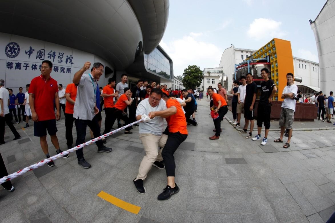 6月28日下午,为庆祝中国共产党成立100周年,中科院合肥研究院等离子体所在EAST控制大厅北广场举办“喜迎建党百年·逐梦聚变前行”趣味拔河比赛,全所共18支队伍逾百名职工和研究生参赛。