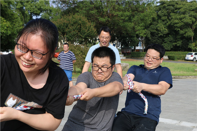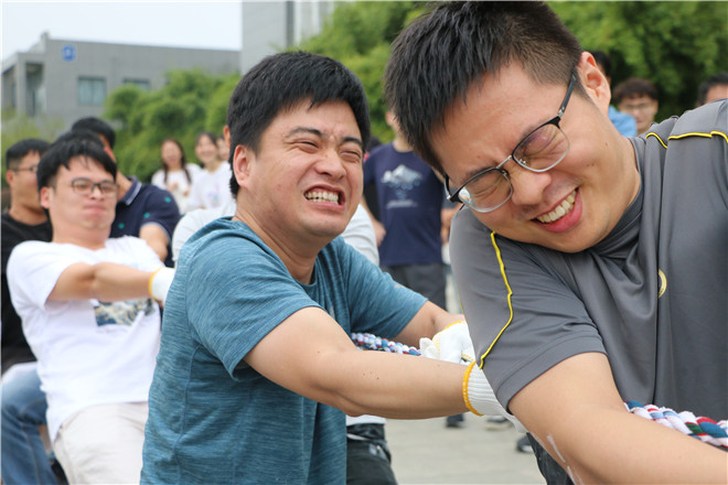 拔河是一项充分体现团队精神的体育运动。比赛现场气氛高涨热烈,参赛队可谓使出了浑身解数:有的请“重量级”人物打头阵,有的从手部技巧上下功夫,还有的凭借啦啦队助力、力求从气势上压倒对手。经过激烈角逐,运行综合1队最终夺得比赛的冠军,生命部2队获得了亚军,材料部1队和磁体部2队分获季军和第四名。