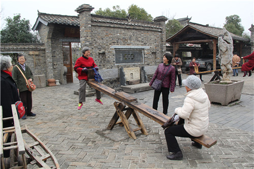 在博物馆里,布有老磨坊、跷跷板等,展示过去生活的场景,七八十岁的女干部们推起了磨、玩起了跷跷板,从大家开怀爽朗的笑声中能感受到大家仿佛回到了少女时代,甚至孩童时代。