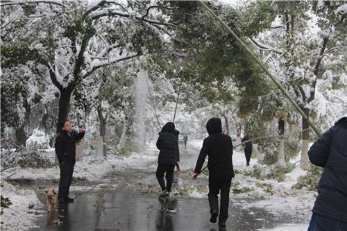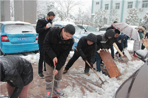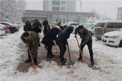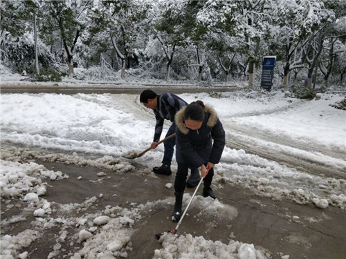 经过奋战,综合楼门前“人肉”开辟出四条主干道,方便车辆和行人通过,门前几十棵樟树经过护林小分队精心呵护,几乎没有再断过枝桠。大雪已过,大家团结一心面对困难的精神却沉淀下来成为每个人的精神财富。