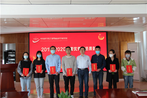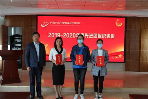 随后,会议对合肥研究院的先进集体和优秀个人代表进行了表彰。合肥研究院团委副书记王青主持会议。合肥研究院团委副书记伍德侠宣读了《关于表彰2019-2020年度先进集体和优秀个人的决定》,共3个先进团组织、16名优秀团干和26名优秀团员接受表彰。研究院党建与监督处处长邵风雷为先进个人和集体的代表颁发了证书。