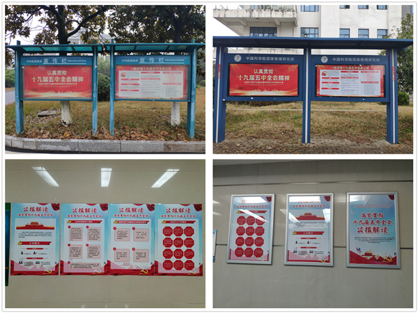 12月1日,中科院合肥研究院固体所研究生第一党支部开展“学习十九届五中全会精神”主题党日活动,制作了《落实贯彻十九届五中全会公报解读》海报31张,并在所综合办协助下张贴至固体所各个办公楼宣传栏内。