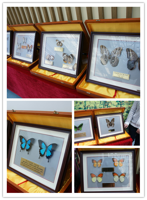 开启仪式前,合肥研究院综合办副主任王锐、上海昆虫博物馆科普部主任黄健波致辞,分别简单介绍了合肥研究院的基本情况和蝴蝶标本的相关情况:本次“与蝶共舞”蝴蝶标本展出活动是由合肥现代科技馆与上海昆虫博物馆共同策划。展出的标本共70盒130余只,除了国家一级保护动物——中国国蝶“金斑喙凤蝶”,还有罕见的日本、马来西亚、印度、美国等珍稀品种标本。这些蝴蝶可谓“价值不菲”,黄健波介绍说,最受游客喜爱的南美“闪客”海伦娜闪蝶(又叫“光明女神蝶”)曾在美国索斯比拍卖会上拍价高达4万多美元,折合人民币36万元(当时)。