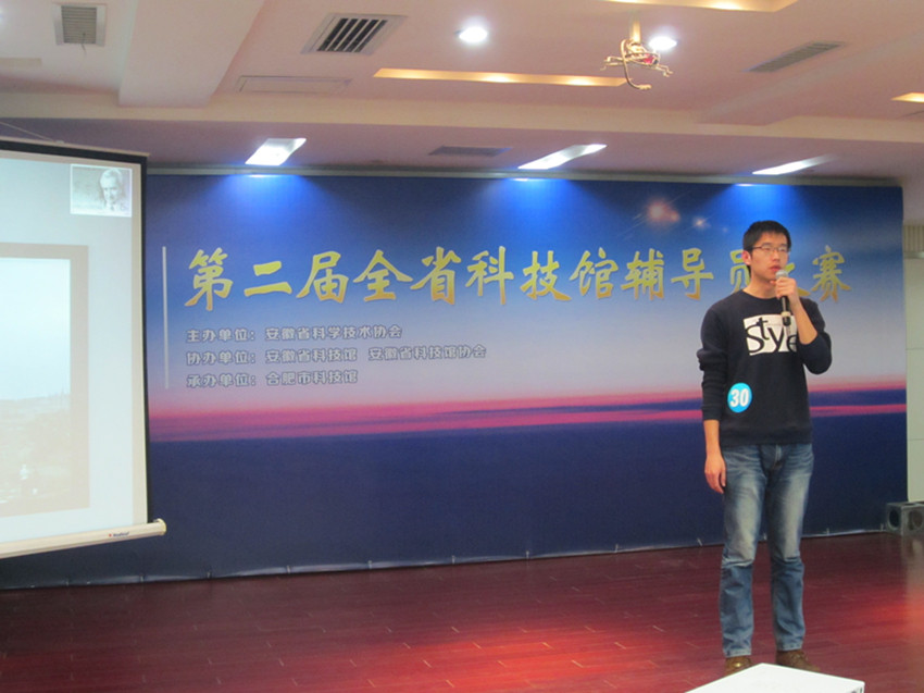 由安徽省科学技术协会主办,省科技馆、省科技馆协会协办,合肥市科技馆承办的“第二届全省科技辅导员大赛”于2014年12月8日、9日在安徽合肥举行。合肥现代科技馆共有4名科普志愿者积极参加了本次个人讲解赛,分别是陈颖(等离子体所核能科学与工程专业,博士三年级)、常鹏翔(等离子体所等离子体物理专业,硕士二年级)、唐海银(固体所材料物理与化学,硕士三年级)、费露露(安徽大学汉语言文学专业,大学一年级)。