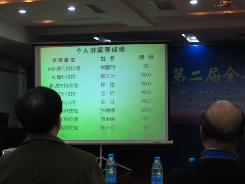 参赛的共有来自全省11个科技馆的40多名优秀科技辅导员,比赛项目分为个人讲解赛和趣味科学实验赛。经过一天的紧张比赛,唐海银在个人讲解赛31名参赛选手中荣获第14名,陈颖、常鹏翔并列15名。队员们得到了评委和其他参赛选手的称赞。合肥现代科技馆还荣获本次大赛优秀组织奖。