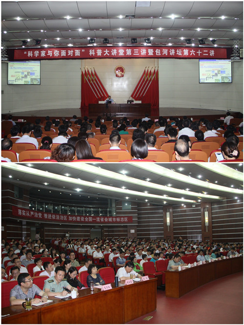带着对这些问题的解答,5月29日上午,“科学家与你面对面”科普讲堂第三讲在包河区政务中心大会堂开讲。合肥研究院副院长刘建国研究员受包河区建设学习型城区指导委员会邀请,作《大气灰霾成因、监测技术进展与日常应用示范进展》专题报告。包河区委副书记、区长耿延强和区四大班子负责同志到场听取讲座,区委副书记葛斌主持讲座。合肥研究院综合处处长程艳、副处长王锐、安徽省科技馆副馆长汪晓东出席讲座。