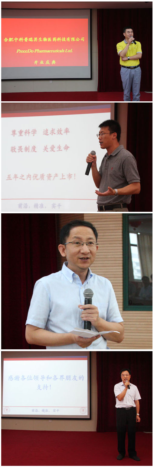 8月20日上午,强磁场科学中心、合肥技术创新工程院、上海联星股权投资管理有限公司、安徽丝路生产力促进中心有限公司等多家单位联合成立的药物学研究成果的转化平台——合肥中科普瑞昇生物医药有限公司正式揭牌。合肥研究院院长匡光力,强磁场中心王俊峰副主任、刘青松研究员,研究院科技发展处邓国庆副处长及其他企业领导出席开业庆典。