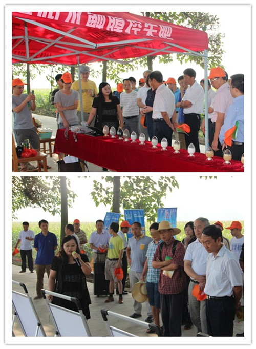 9月7至8日,“第二粮仓”STS预研项目“淮北科技增粮县域技术集成与示范”成果现场观摩交流会在涡阳县楚店镇示范区召开。中科院科发局领导、安徽省科技厅、安徽省农委领导以及安徽玉米产业体系的专家、示范区领导、示范区科技人员和种粮大户、安徽同丰种业、龙亢农场以及心连心化肥有限公司、安徽康禾农林病虫害综合防治公司等合作企业的领导和代表共60余人参加了观摩会。