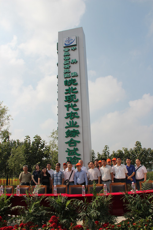 项目实施半年多来,项目组与示范区政府、合作企业建立了互信紧密的合作关系,涡阳县政府、安徽同丰种业和项目牵头单位合作建立了“中科院合肥研究院皖北现代农业综合试验站”。观摩会后,中科院科技促进发展局副局长段子渊、合肥研究院副院长江海河、安徽省农委农技推广站站长汪新国、安徽省科技厅农村科技处副处长王士武、涡阳县副县长黄恺以及涡阳县陈大镇纪委书记刘坤为试验站揭牌。