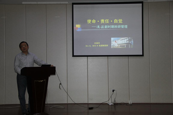 最后,王容川做了题为《使命、责任、自觉》的总结讲话。他表示,研究所要找准方向、凝练目标,有所为,有所不为;要充分认清目前具有的核心竞争力,进一步巩固研究所不可替代性的优势,完善制度,优化流程,强化管理,完善组织构建,优化专业队伍结构;希望员工们都能增强服务意识,增强使命感、责任感和自觉感,研究所应注重营造科学文化氛围,让科学工作者能够潜心进行科学探索,相互交流合作,共同促进研究所可持续发展。