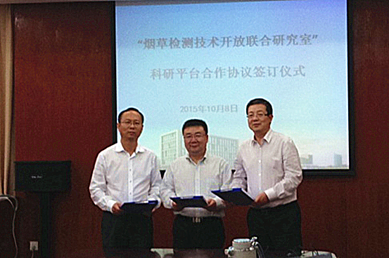 10月8日,“烟草检测技术开放联合研究室”合作协议签约仪式在国家烟草质量监督检验中心举行,该研究室是由贵州中烟工业公司牵头,中科院合肥研究院应用技术所、国家烟草质量监督检验中心参与的三方共建科研平台。