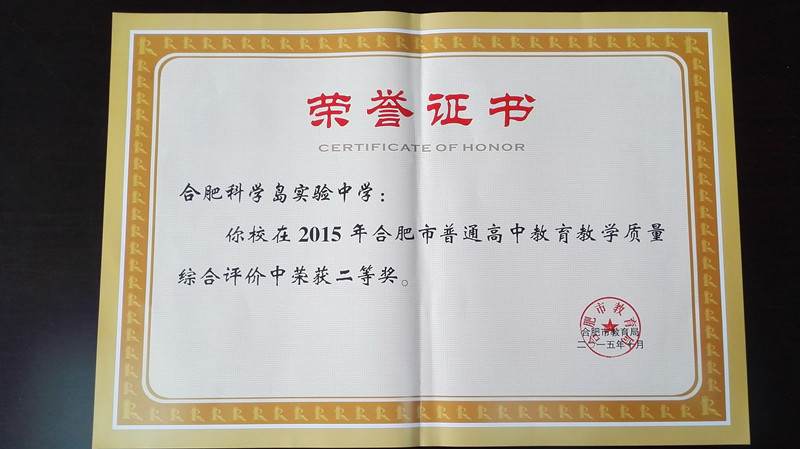 10月22日下午,在刚刚结束的2015年全市普通高中教育教学工作表彰大会上,合肥科学岛实验中学荣获合肥市高中教育教学综合质量评价二等奖。这是继2008年以来学校连续八年获奖,这也是继今年7月科学岛实验中学正式获教育局批文成为市级示范中学的另一喜事,可谓双喜临门。