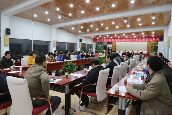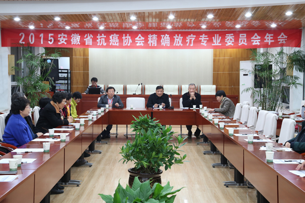 安徽省抗癌协会精确放疗专业委员会全委会 精确放疗专业委员会秘书吴黎明主持会议 中科院合肥肿瘤医院执行院长高世明致欢迎辞 精确放疗专业委员会主任委员许伯寿发言 精确放疗专业委员会各委员积极发言讨论 会场