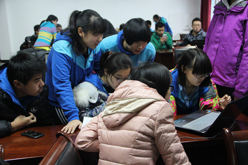 12月13日上午,是学生们PPT答辩时间,经过12日晚熬夜奋战,每位学生要轮流走上讲台,进行课题成果汇报和答辩。台下,作为指导老师的科研人员并不轻松,有的老师与学生们一起,奋战到凌晨,他们希望通过自己的引导,看到学生们的进步、收获和成长。
