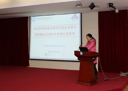 此外,强磁场中心科研项目办公室副主任邵淑芳还作了“强磁场中心2015年度国家自然科学基金申请与资助情况及2016年申请注意事项”的报告,对强磁场中心近年国家自然科学基金申请和资助数据进行了统计、总结汇报,分析了强磁场中心基金项目申请过程中的优势和不足,同时对2016年基金申请的新政策进行了介绍。邵淑芳还结合近年强磁场中心基金项目形式审查过程中出现的问题,详细地讲解了申请书填报过程中需要注意的细节问题,希望申请者在申请过程中能注意形式审查问题,避免因小失大。