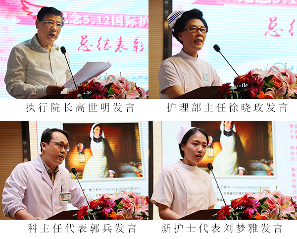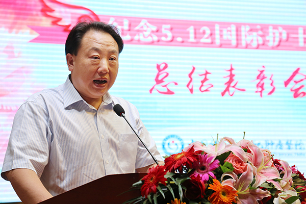 医院院长王宏志在表彰会上作讲话,他表示我院自2015年起逐步推进开展的《责任制整体护理及优质护理工作方案》,取得了很好的成绩和良好的患者反馈,这都离不开我院100多名护理人员的辛勤付出和努力,她们美好的职业形象,已经成为了我院又一道亮丽的风景线。同时,医院升级扩建项目的不断落实推进,也对我院的护理队伍建设提出了更高的要求,他希望护理工作者们继续发扬无私奉献的光荣传统和救死扶伤的人道主义精神,努力塑造出一支用护理专业知识和职业品格服务于人民健康事业的优质护理服务团队。王宏志还在发言中给在场的护理工作者们分享了三个工作理念,一是要“仰望星空与脚踏实地相结合”,二是要记住“一勤天下无难事”,三是“同心协力,共赢发展”。他强调人因梦想而伟大,希望个人的梦想能与医院争创三甲的梦想相结合,在工作中才能“心中有梦、心情愉快”。