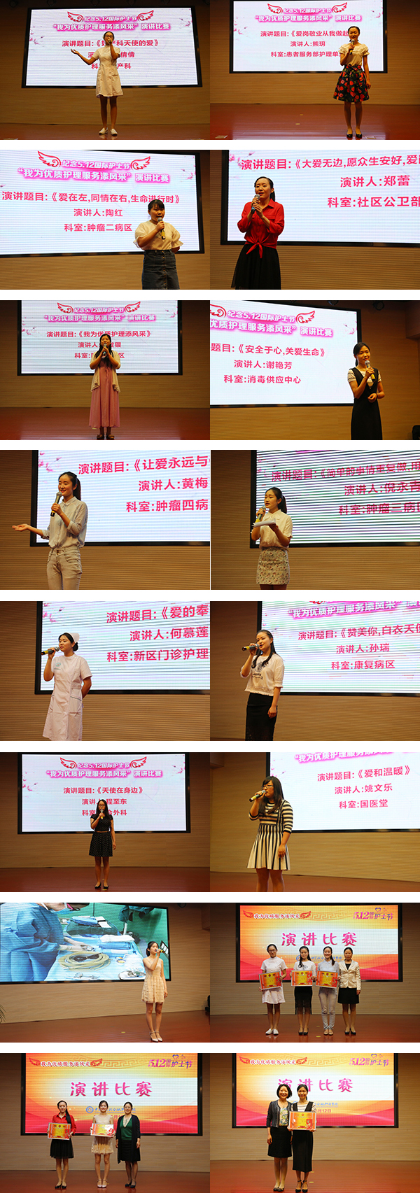 表彰会后,现场还举办了“我为优质护理服务添风采”演讲比赛。全院13个护理单元的参赛代表相继登台演讲。最终,来自消毒供应中心的谢艳芳凭借内容生动、切合工作实际的演讲稿和出众的舞台感染力夺得了一等奖。