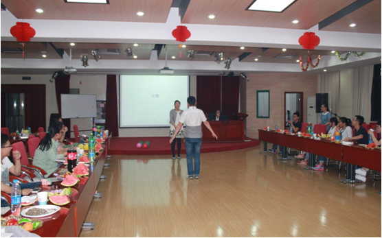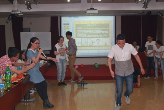 如果说毕业生“欢送杯”篮球赛是中心毕业生和前来送别的非毕业生的一场体育盛宴的话;那么,中心于6月2号举办的毕业生“欢送晚会”则是一场毕业生和非毕业生心与心之间的对话。欢送晚会在当晚7点半正式拉开序幕,会场布置一新、给人温馨如家的感觉,仿佛会场的每一张桌椅、每一个道具都在述说着强磁场科学中心对于2016届毕业生的不舍之情。尽管非常不舍,但相信再聚终有时,欢送晚会安排了丰富多彩的节目,包括:五毛一块、你比我猜、企鹅漫步、滚铁环接力等游戏活动。在这些活动中,大家可谓是“八仙过海,各显神通”,每个人都使出浑身解数,尤其是毕业生们更是才华横溢、水平高超,他们将自己非常优秀的一面定格在了那个夜晚,定格在了强磁场科学中心。衔接每个游戏活动的则是“中心好声音”环节,毕业生们一展歌喉,那一刻,仿佛他们在用自己优美的歌声向他们求学于兹的强磁场科学中心倾诉了他们的赤子之心;师弟师妹们也是载歌载舞、用各自的方式向毕业的师兄师姐们表达自己的不舍之情与美好祝福!