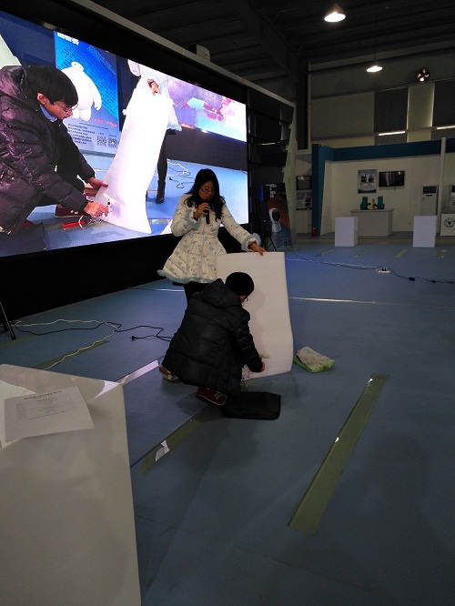 先进制造所张亚男、马刚在创新组比赛中进行仿生爬壁机器人演示