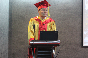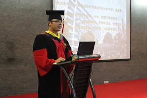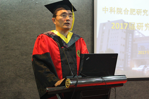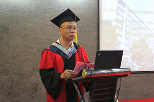 典礼在雄壮的国歌声中拉开帷幕,应用技术所党总支书记梁华为老师祝贺同学们顺利毕业并取得学位,祝福同学们在今后的岁月里飞得更高更远,感谢同学们为应用所的发展作出的贡献;对即将离别的毕业生,梁华为和他们共同分享了一点心得——没有一种工作是不辛苦的,希望同学们正确对待并珍惜自己的工作,认真做好工作中的每一件事,并欢迎同学们“常回家看看”。
