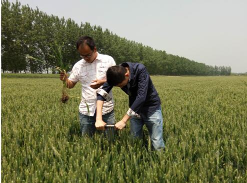 5月28日,在蚌埠市怀远县龙亢农场,国家重点研发计划粮食丰产增效科技创新专项(简称粮丰专项)“江淮中部农田耕作改土培肥与粮食作物水肥互促节水保肥关键技术研究”项目组会同农场专家、技术人员,对技术生物所承担的新型肥料示范田课题进行测产。
