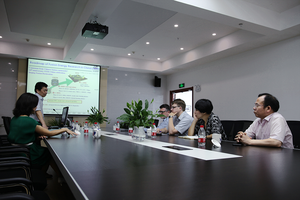 万宝年向来宾介绍了等离子体所的基本情况、国际合作进展,尤其是多年来与德国密切的合作往来情况。随后,Kaufmann一行参观了控制大厅展区、EAST装置大厅、低温测试大厅、ITER电源大区及超导测试大厅。万宝年详细介绍了EAST装置实验进展、合肥综合性国家科学中心近况、参与ITER计划及所做的贡献、未来聚变堆发展计划等。Kaufmann一行表现出极大兴趣,并表示希望今后能进一步加强中德在等离子体控制和聚变研究发展上的合作。