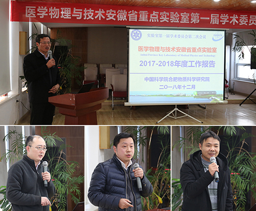 实验室主任储焰南研究员汇报了实验室2017-2018年度工作情况。韩伟研究员、沈成银研究员、马祖长研究员分别作专题报告,汇报了《等离子体肿瘤治疗研究进展》、《医用质谱工作进展》和《智能化健康促进服务关键技术研究进展》。