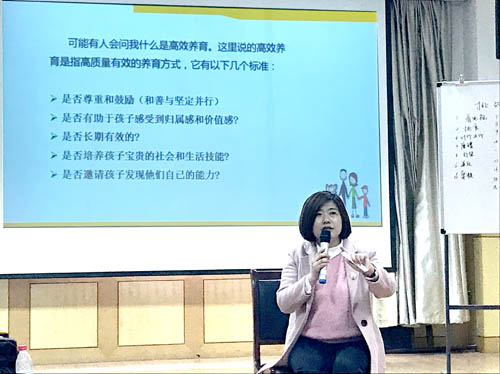 李娟老师从一个“握拳”小游戏开始了她的授课交流,随后,她请参训的家长们提出自己在教育子女时面临的挑战,以及期待将来孩子成人后拥有的优秀品质,两相对比,不难发现孩子现在面临的挑战和问题却是将来其成人后能否拥有优秀品质的关键点。家长们在李娟讲师的引导下,感悟到孩子在成长过程中面临的每一次挑战和问题,实际都是孩子能力提升的机遇,也是家长着手培养孩子良好品质和人生技能的绝好机会。李娟讲师提示:作为家长,我们应尊重孩子、尊重自己、尊重环境,不惩罚、不骄纵、不奖励、不包办,放手培养孩子自我解决问题的能力。