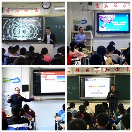 会后,科普报告专家采取“一对一”模式,分别进入初一年级14个班级进行授课,课程时长约45分钟。各位报告人通过深入浅出的讲解,结合科学互动小实验,将涉及人工智能、清洁能源、材料化学、生物医学、信息安全、环境保护等多个研究领域的科学知识传播给孩子们,激发了学生们对科学知识的强烈兴趣。现场不时发出惊叹和欢笑声,课堂气氛十分活跃。