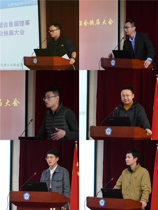 首先,第一届博士后联谊会理事长唐祥虎向大会做了本届理事会工作报告,回顾了首届联谊会理事会成立以来所开展的工作,并对下一届理事会工作提出了展望和建议。随后,大会进行第二届联谊会理事会换届选举。经过与会代表表决,七位博士后成功当选第二届合肥研究院博士后联谊会理事。最终确定徐玉平为理事长,杨猛为副理事长,温作赢、李晓明、李玉莲、许航博和潘洪涛为理事。