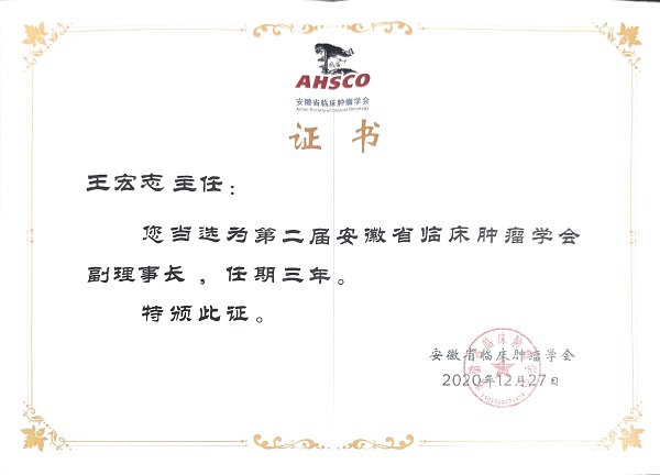 12月27日,安徽省临床肿瘤学会换届会议在合肥召开,中国科学院合肥肿瘤医院院长王宏志研究员当选第二届安徽省临床肿瘤学会副理事长,院长助理胡宗涛、张利伟当选学会常务理事,泌尿生殖肿瘤中心叶瑞萍、肿瘤综合治疗中心骆鹏等当选理事。