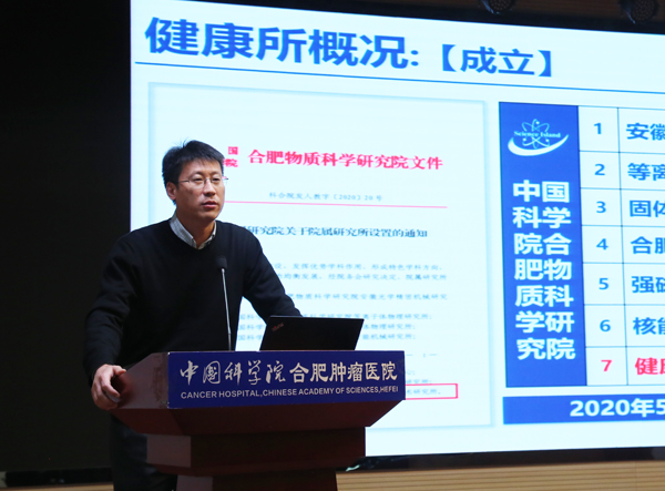 所长刘青松作健康所2020年度总结报告,他表示2020年是极不平凡的一年,新冠肺炎疫情的肆虐,让全世界人民都感受到健康医学的发展对于人类的重大意义。2020年5月,健康所正式成立,并围绕疫情在科研和临床两条战线进行同步攻关,为控制国内疫情蔓延做出了贡献。过去的一年里,健康所的科研成果也相继获得了安徽省自然科学二等奖和国家技术发明二等奖,750名健康所人用实际成果开启了健康所高质量发展的新篇章。2021年希望健康所全体干部职工围绕习近平总书记提出的“面向人民生命健康”精神,在肿瘤基础研究、技术创新、药物研发、临床转化等方面加快推进、加速落实,为中国转化医学发展作出应有贡献。