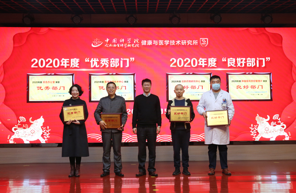 大会分别对健康所2020年度优秀良好部门、优秀个人、先进党支部,以及中国科学院合肥肿瘤医院2020年度优秀良好部门(中心)、优秀良好科室、院长特别奖、抗疫优秀个人等进行了表彰。