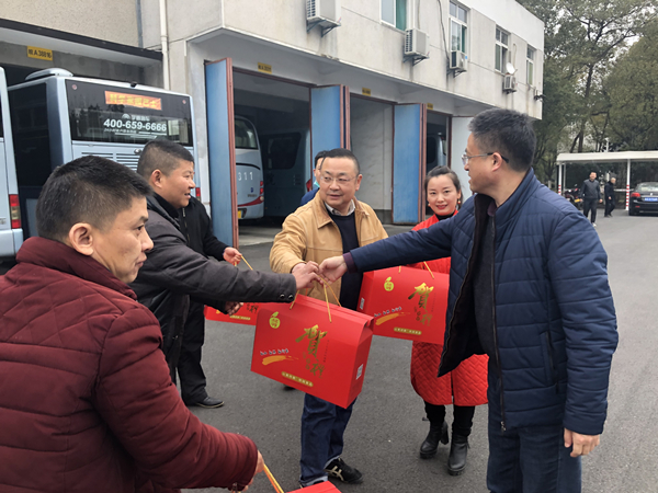 2月11日上午,农历大年三十,服务中心主任李平,副主任吴桂、张晓伟看望了值守在工作岗位的60多位后勤一线职工。