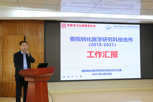 邹士平就合肥研究院整体发展情况以及“面向人民生命健康”领域的发展做了介绍,对安徽省卫生健康委员会和中科院合肥研究院双方在转化医学研究科技合作方面的背景进行了介绍。他还就安徽省卫生健康委员会长期以来对合肥研究院科研事业特别是转化医学科技工作的支持表示感谢。