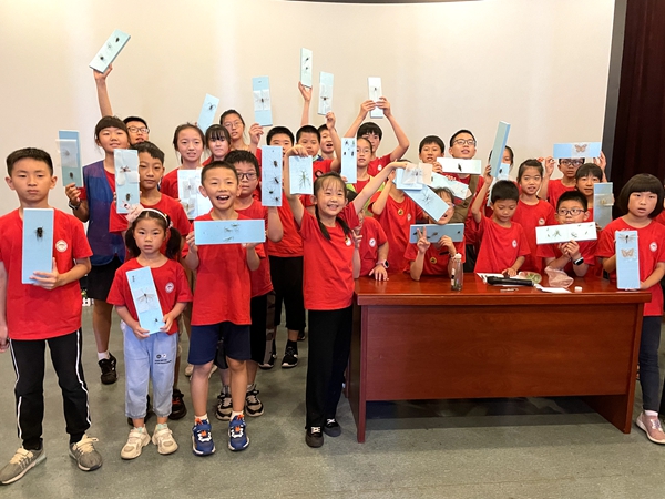 小营员们带上捕虫网,在老师们的带领下在科学岛的草丛中、树林间进行捕虫活动,近距离的观察昆虫,向老师请教昆虫有关知识。上海昆虫博物馆的老师带领小营员们进行昆虫标本整理、鉴定与制作,了解活体昆虫饲养方法。在老师指导下,小营员们将手中的昆虫变成了美丽的艺术品。