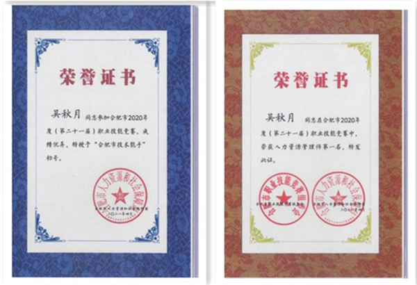 近日,由合肥市人力资源和社会保障局主办,合肥市人力资源协会承办的第二十一届人力资源管理技能竞赛举行了颁奖仪式。中科院合肥研究院安光所光电子中心员工吴秋月以本次竞赛第一名的成绩获得“合肥市五一劳动奖章”“合肥市技术能手”的称号。