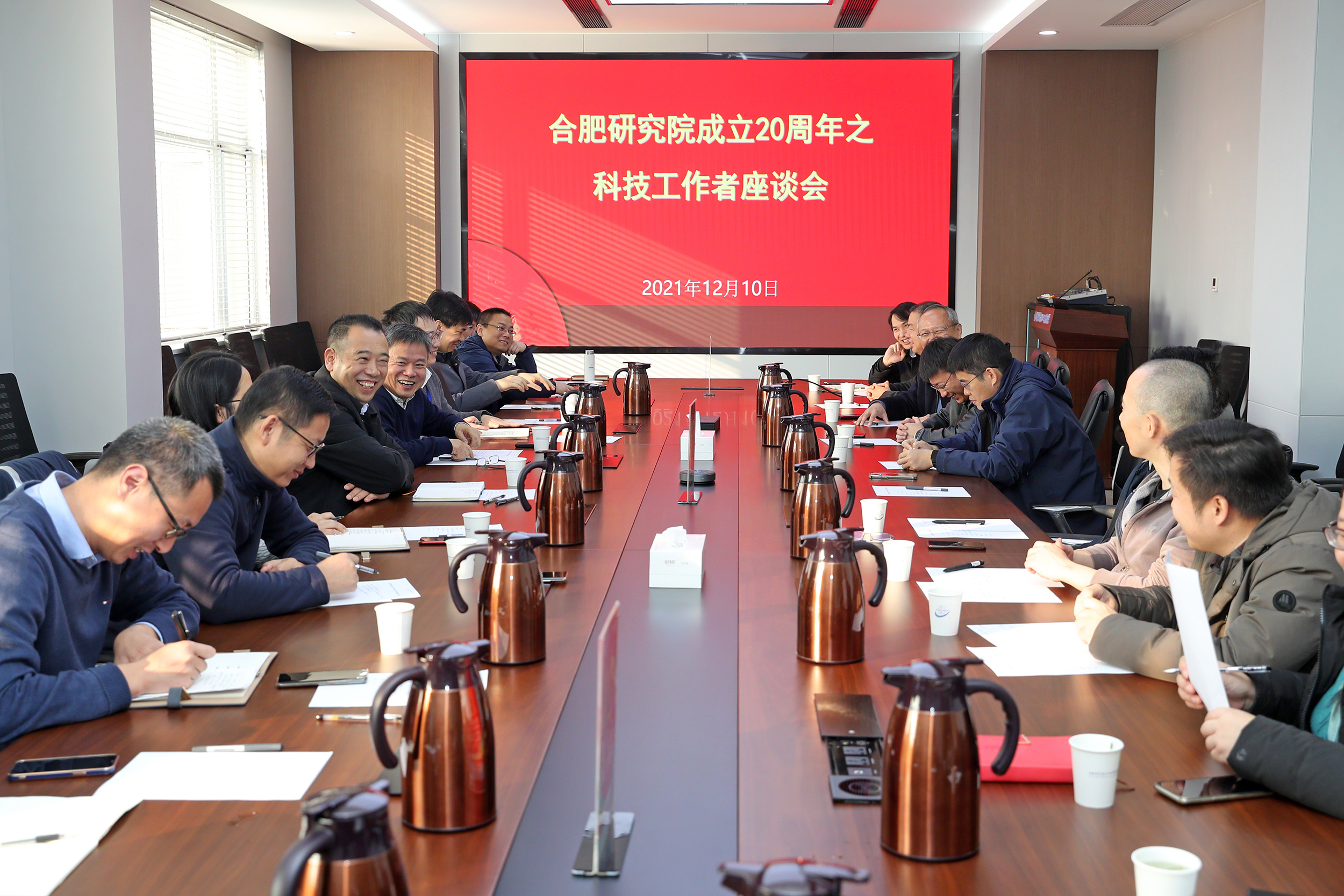 12月10日,值此合肥研究院成立20周年之际,合肥研究院组织召开科技工作者座谈会,探讨如何吸纳各方面高精尖人才、助力研究院科技自立自强,讨论交流对研究院发展的意见和建议,旨在激励科研人员围绕合肥研究院主责主业提高积极性和创造性,为科技事业建功立业。合肥研究院院长刘建国、党委书记黄晨光,部分科技工作者代表和相关处室负责同志等20余人参加座谈。