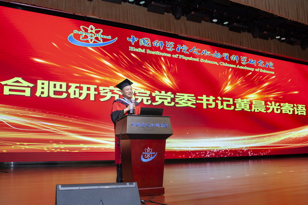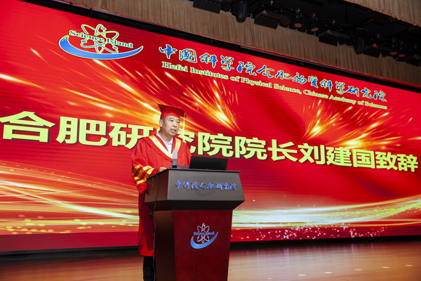 刘建国在致辞中向全体毕业生表示祝贺,向辛勤付出的导师们表示衷心感谢。他说,在疫情重大考验下同学们携手同心、行而不辍,用高质量论文展现科研坚持,用实际行动实现青春梦想。他希望同学们奔赴祖国各地后,继续葆有科学岛人的热忱,练就担当实干的真本领,以初心践行使命,用才学成就人生。他期望同学们牢记研究院和导师的教诲,志存高远、脚踏实地、不负韶华、不负时代,用奋斗书写科技报国的青春篇章。