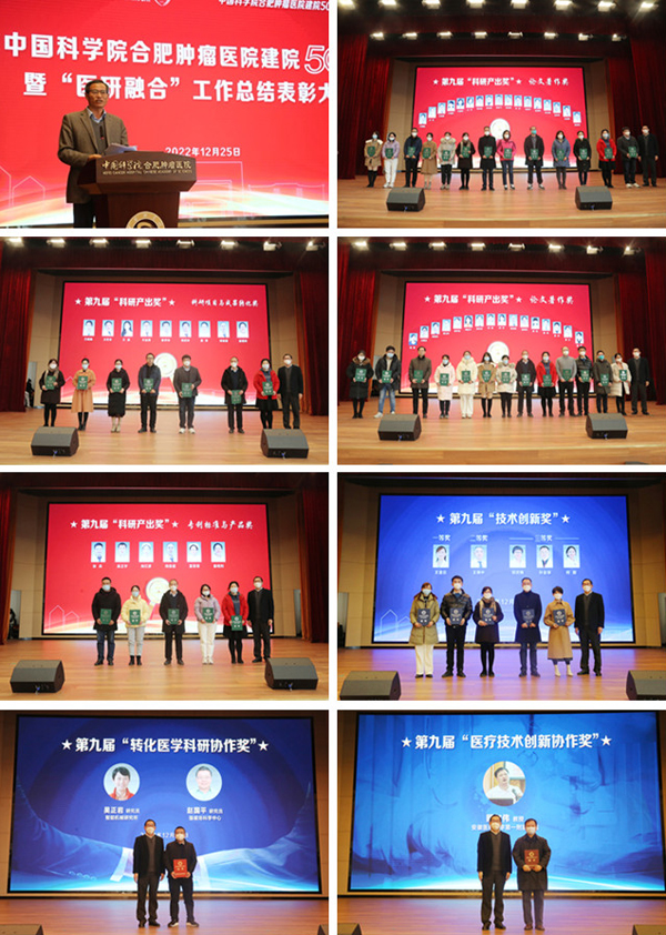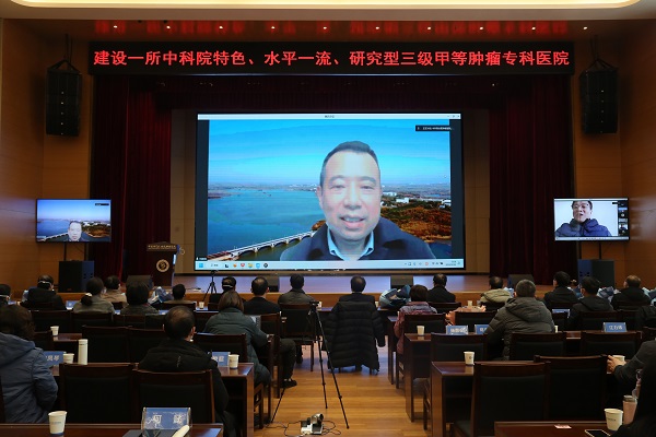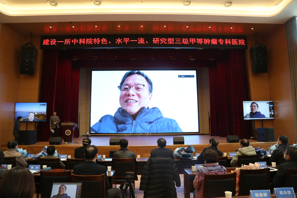 12月25日下午,中国科学院合肥肿瘤医院在新院区多功能学术报告厅举办建院50周年暨“医研融合”工作总结表彰大会。因疫情原因,本次会议采用线上与线下相结合的形式召开。合肥研究院院长刘建国,党委书记黄晨光,十余名特聘专家等应邀出席会议。健康所及医院领导班子成员、中层管理干部、全院职工代表等共五百余人参加会议。