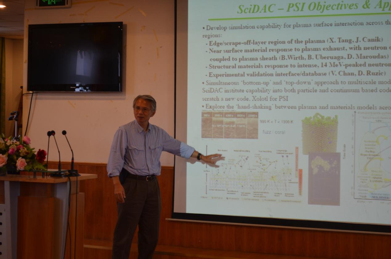 96日,美国通用原子公司(General Atomics)聚变理论和计算科学部门负责人陈锡熊(Vincent Chan)博士应邀访问等离子体所聚变堆材料科学与技术研究室。双方就材料、边界模拟及其实验验证等问题进行了广泛交流并讨论了今后的合作方向。