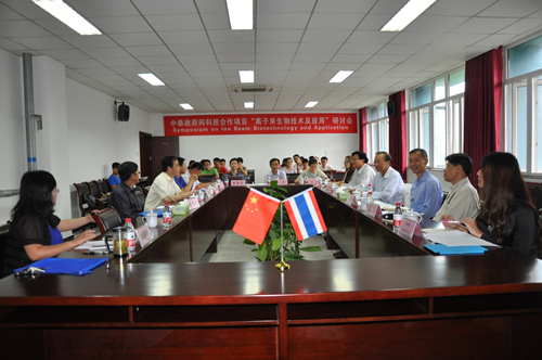 在科技部中-泰政府间科技合作 “离子束生物技术在农作物增产中的应用” 项目支持下,8月31日至9月4日,泰国教育部现代物理中心主任——泰国著名物理学家Thiraphat Vilaithong教授率领清迈(Chiang Mai)大学和平遥(Phayao)大学等六位专家访问技术生物所,并与中科院离子束生物工程学重点实验室签订了框架合作协议,双方在未来的合作中,将发挥各自的优势和特色,共同协作、共谋发展。