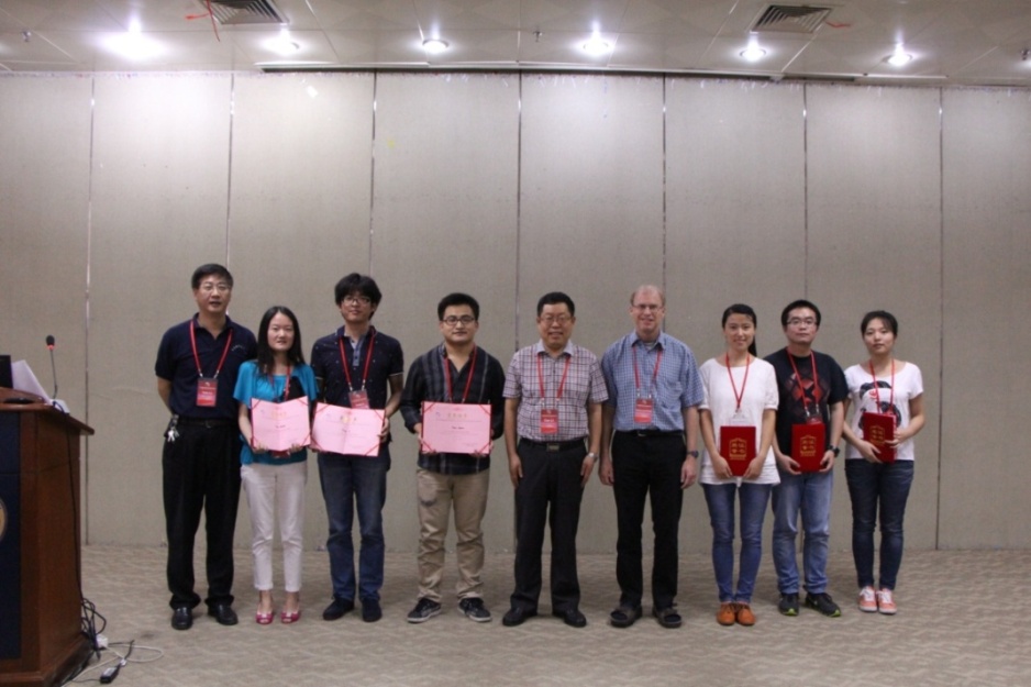 此外,研讨会还安排了来自中科院能量转换材料重点实验室以及中国科学技术大学化学与材料科学学院的45名研究生进行墙报展讲,并设立了最佳学生墙报奖。经过评审委员会的认真评审,评选出一等奖1名,二等奖2名,三等奖3名,李灿院士、Rodney Scott Ruoff教授、陆亚林教授在会议闭幕式环节为获奖者颁发了证书和奖品。